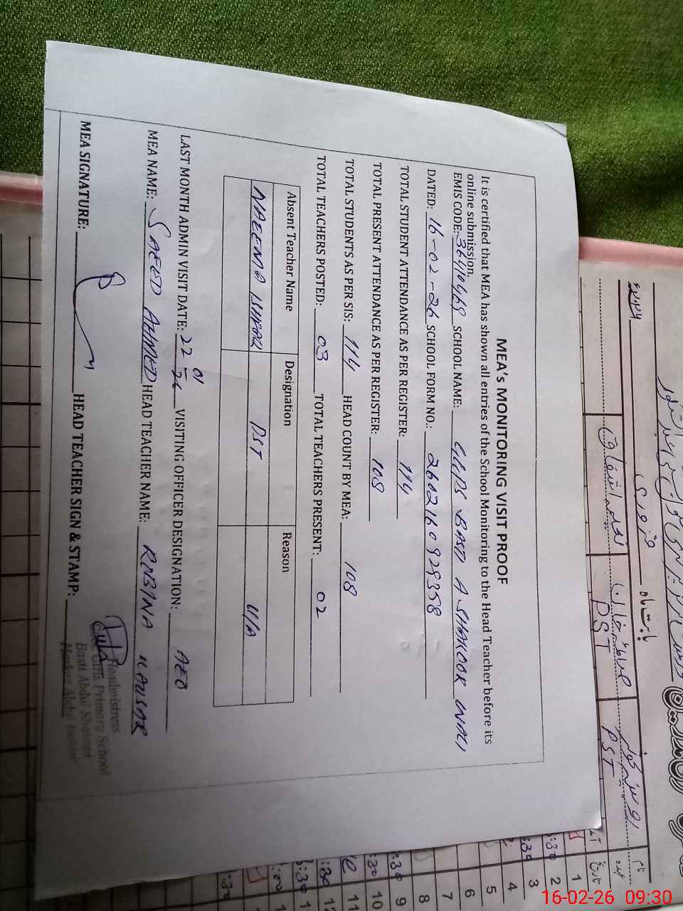| Certified that this School was Inspected by the Undersigned MEA/DMO Today and the Information Stated Above is as Per Record. | |||||