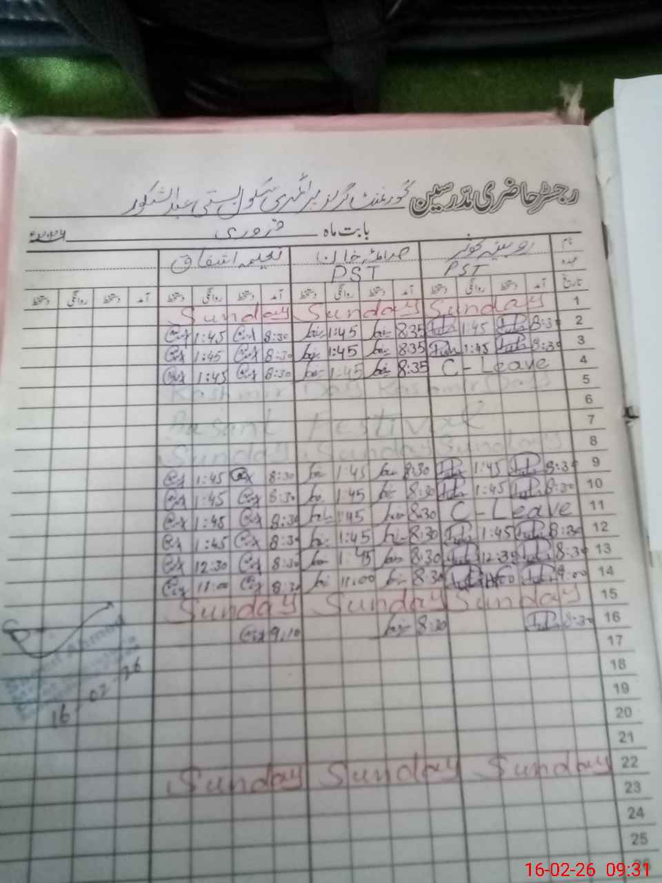 | 36**** | Na**** Is**** | PST Arts | Regular | 0 | 0 | 0 | 0 | 0 | 0 | 0 | 0 | 0 | Absent (Un-Authorized) |