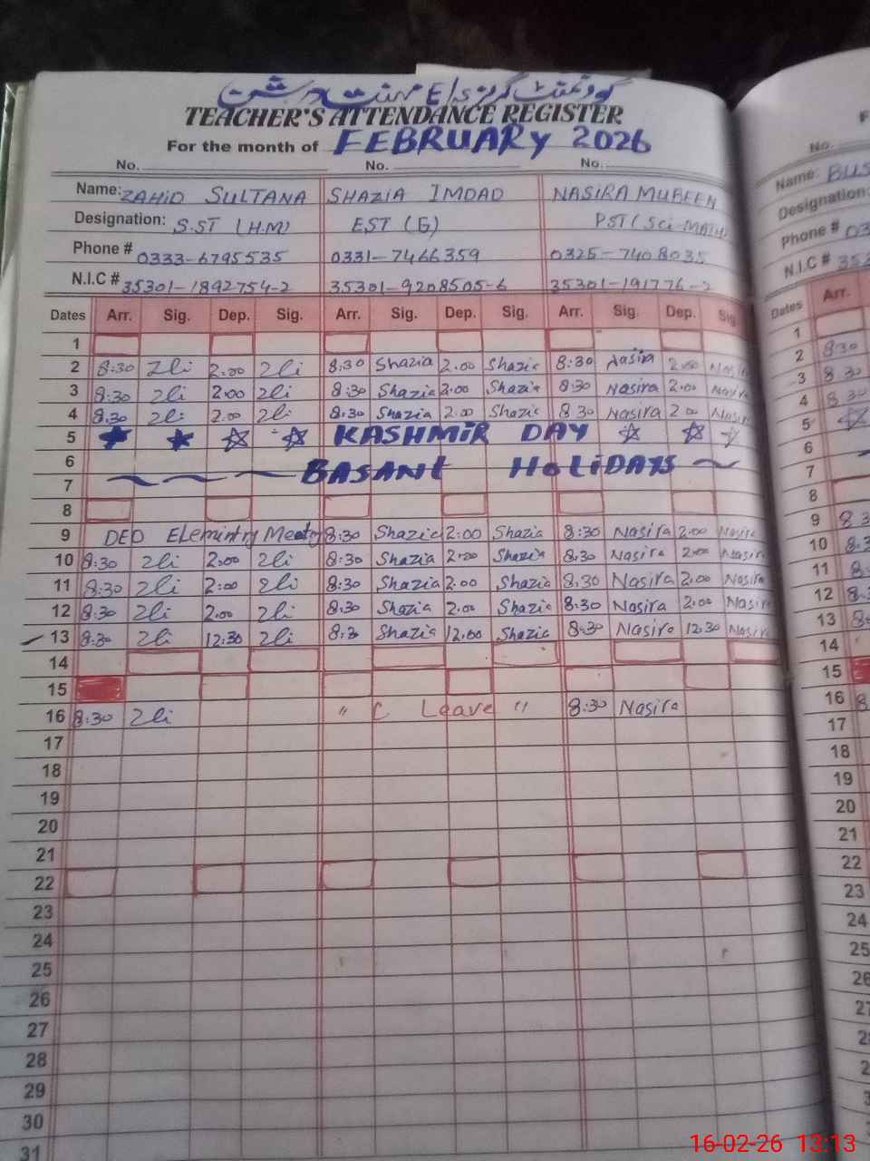 | Name: ZA**** SU**** Designation: (School Headmaster's/Headmistress's) SST GEN Phone/Cell Number: 03**** |