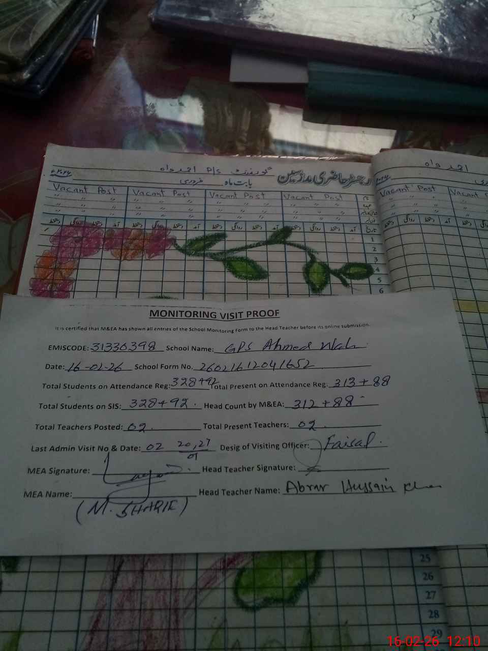 | EMIS Code: 31330398 | Name of School: GPS AHMED WAH | |||