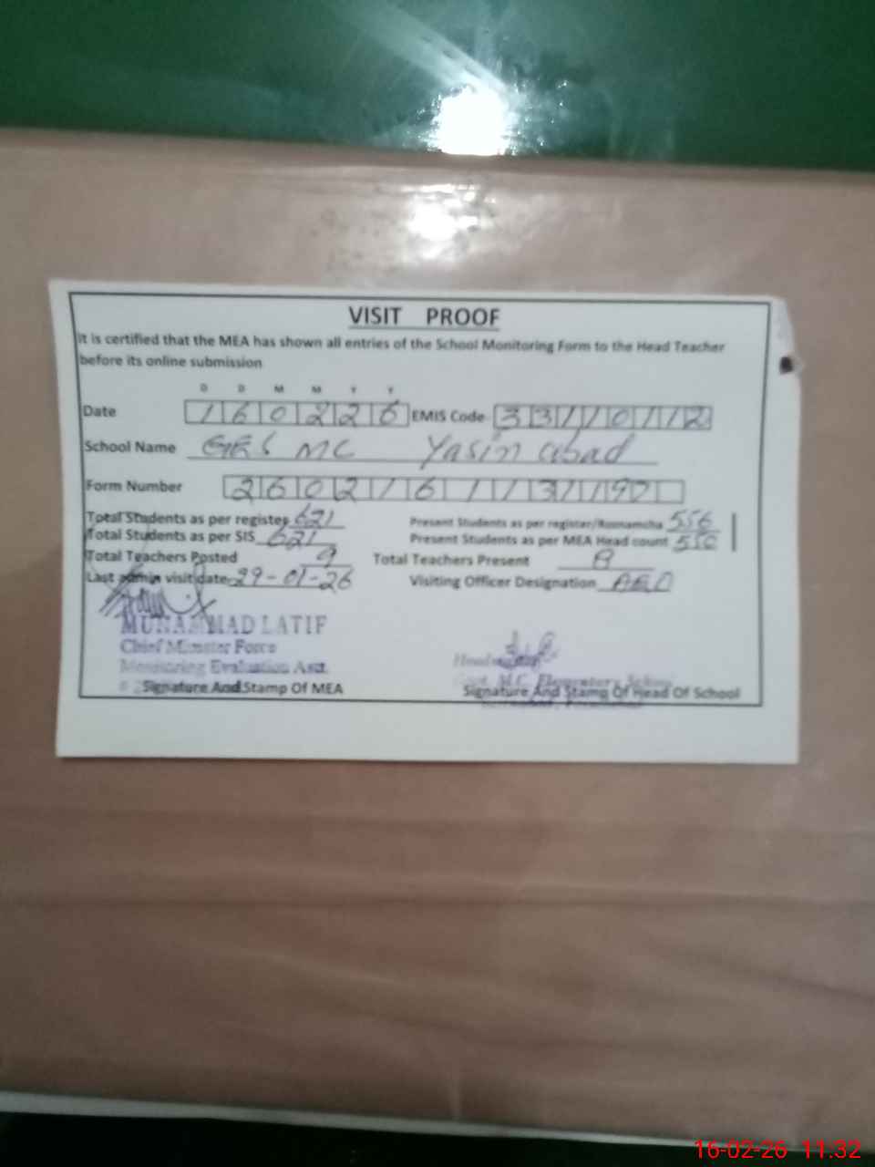 | EMIS Code: 33110112 | Name of School: GES MC YASEEN ABAD FSD | |||