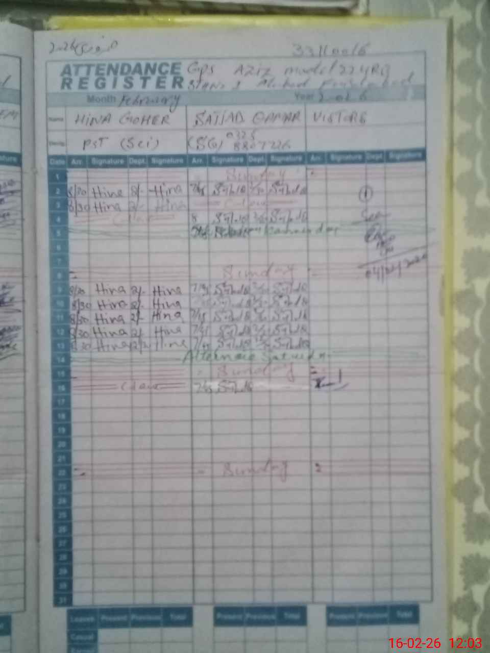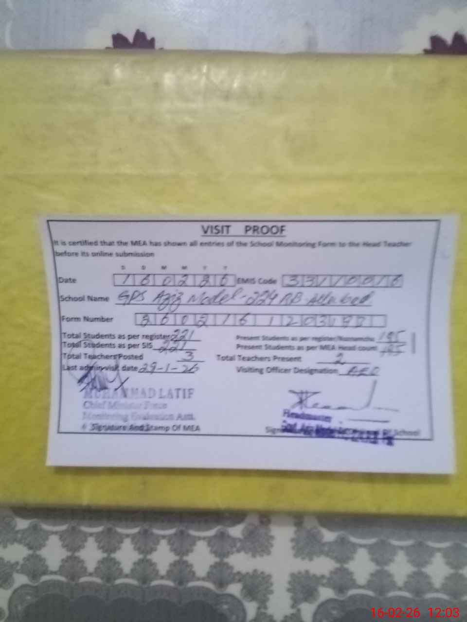 | EMIS Code: 33110016 | Name of School: GPS AZIZ MODEL ALLA ABAD PUR FSD 224RB | |||