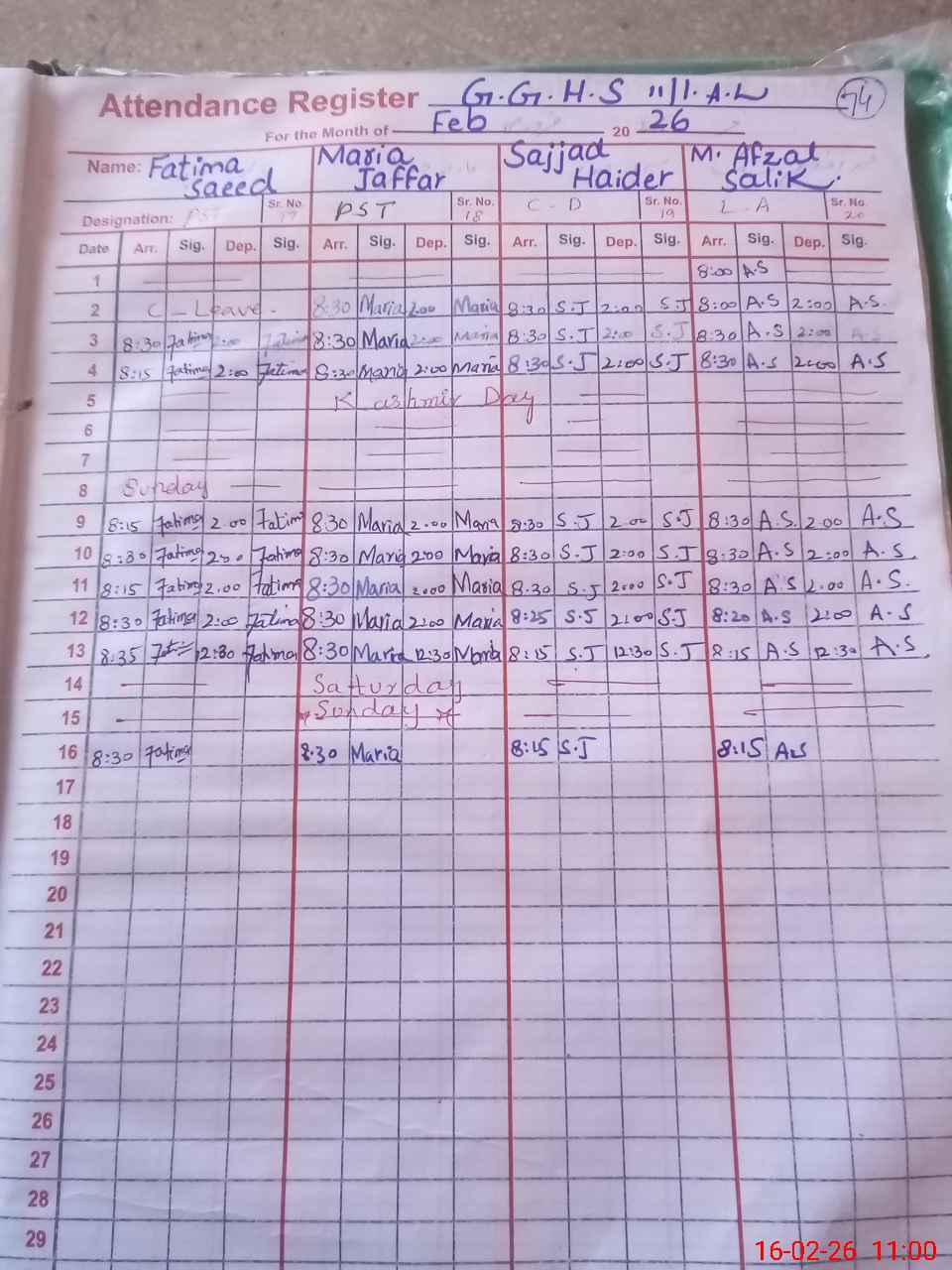 | 35**** | Ba**** Ta**** | SST Computer Science | Regular | 0 | 0 | 0 | 0 | 0 | 0 | 0 | 0 | 0 | Maternity |