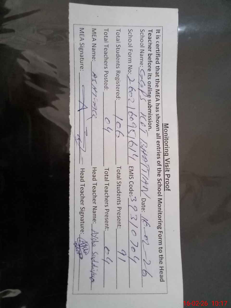 | EMIS Code: 39310704 | Name of School: GGPS KOT BHATIAN | |||