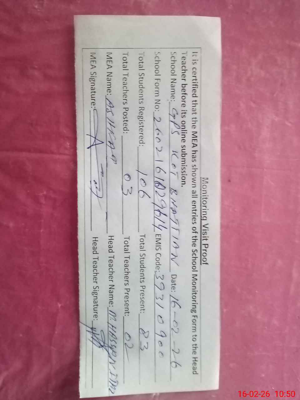 | EMIS Code: 39310900 | Name of School: GPS KOT BHATTIAN | |||