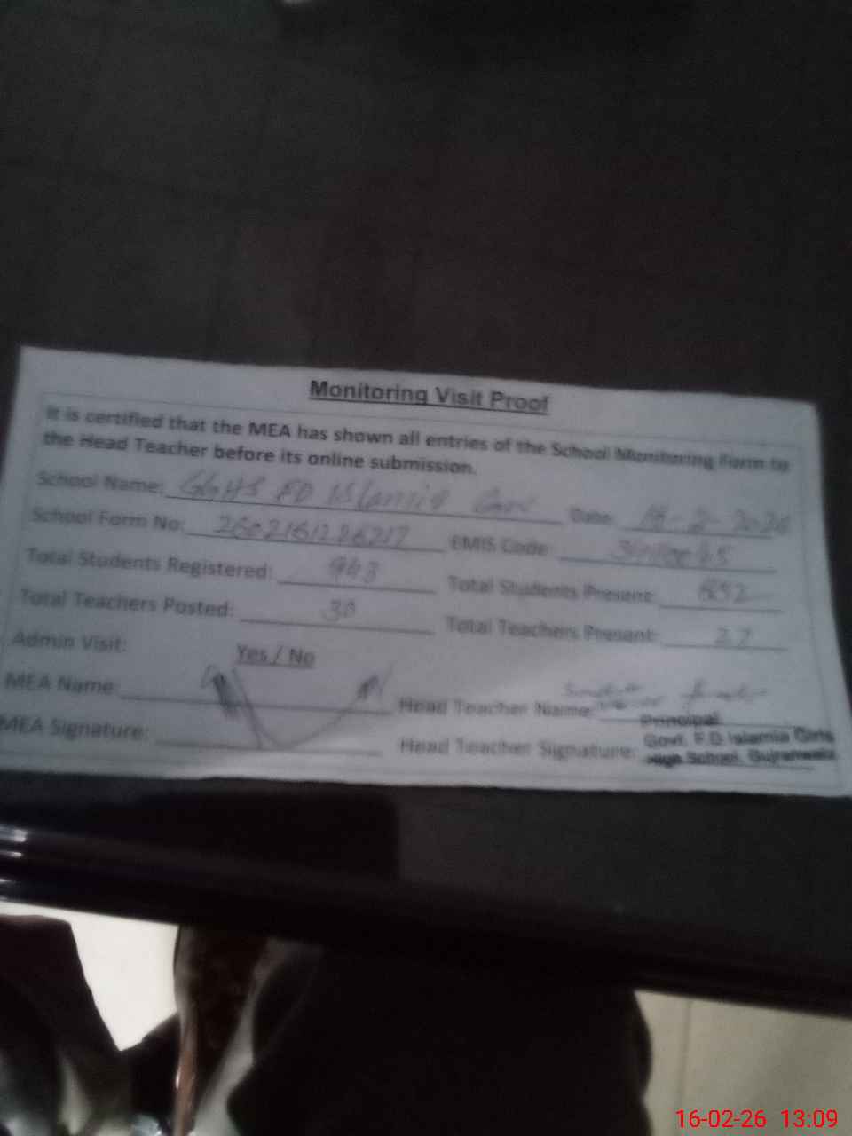 | EMIS Code: 34110045 | Name of School: GGHS F.D. ISLAMIA GUJRANWALA | |||