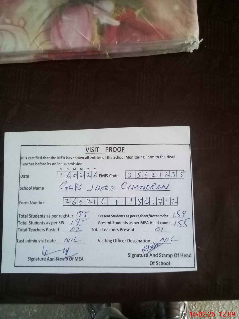 | EMIS Code: 35621232 | Name of School: GGPS MODEL JHOKE CHANDHRAN | |||