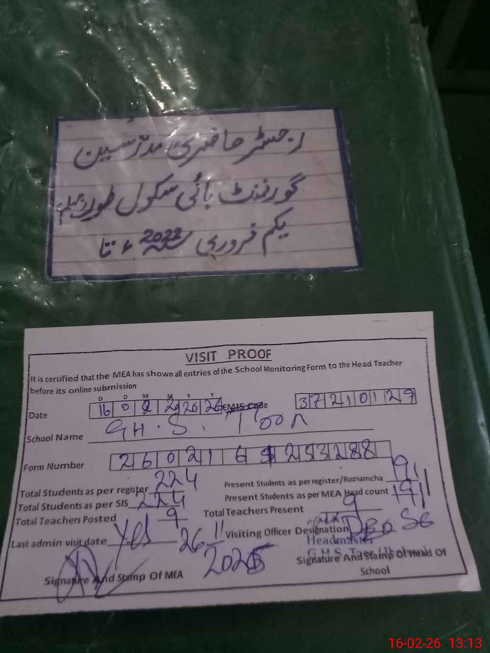 | EMIS Code: 37210129 | Name of School: GHS TOOR | |||