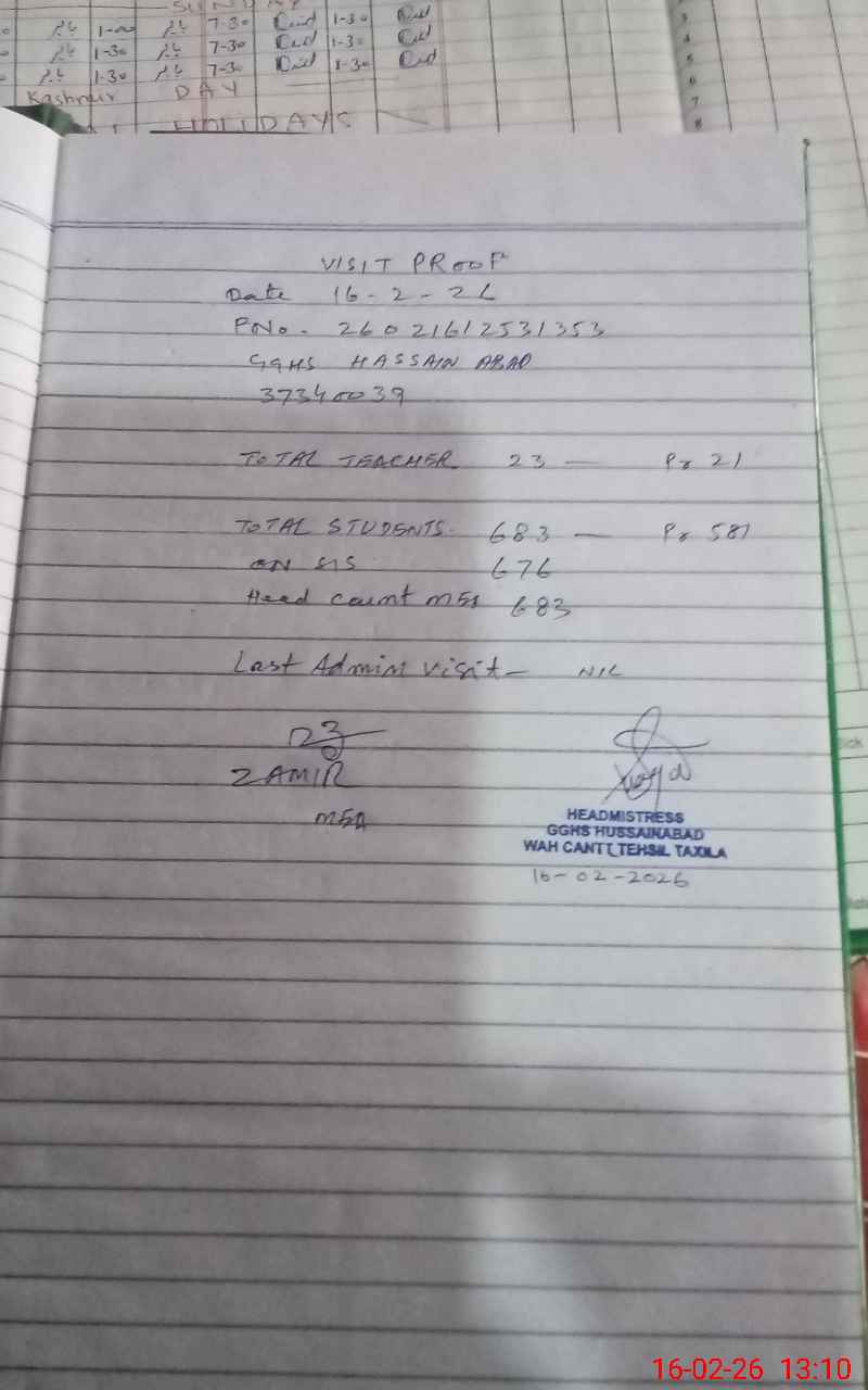 | EMIS Code: 37340039 | Name of School: GGHS HASSAIN ABAD | |||