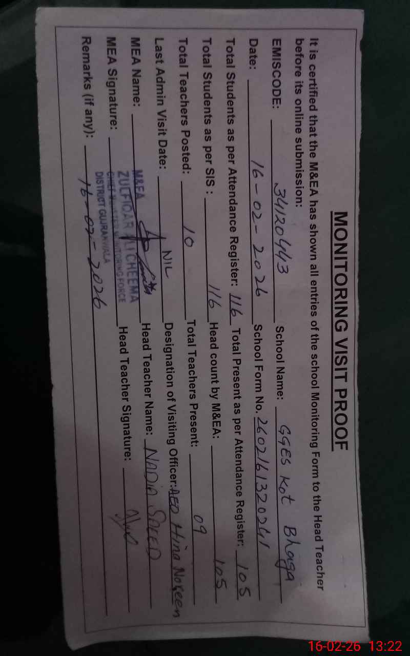 | EMIS Code: 34120443 | Name of School: GGES KOT BHAGA | |||