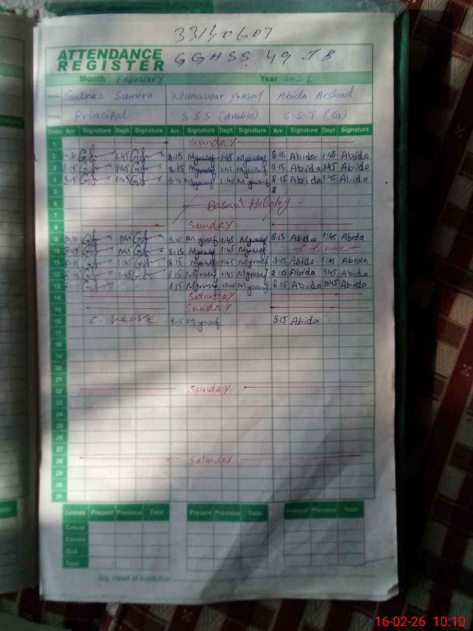 | 33**** | Gu**** Su**** | PRINCIPAL | Regular | 0 | 0 | 0 | 0 | 0 | 0 | 0 | 0 | 0 | Absent (Un-Authorized) |