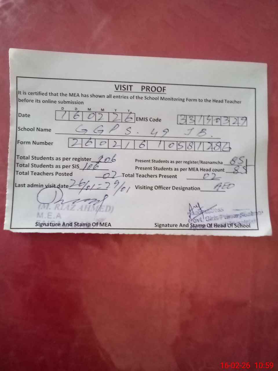 | EMIS Code: 33140329 | Name of School: GGPS 49 JB | |||