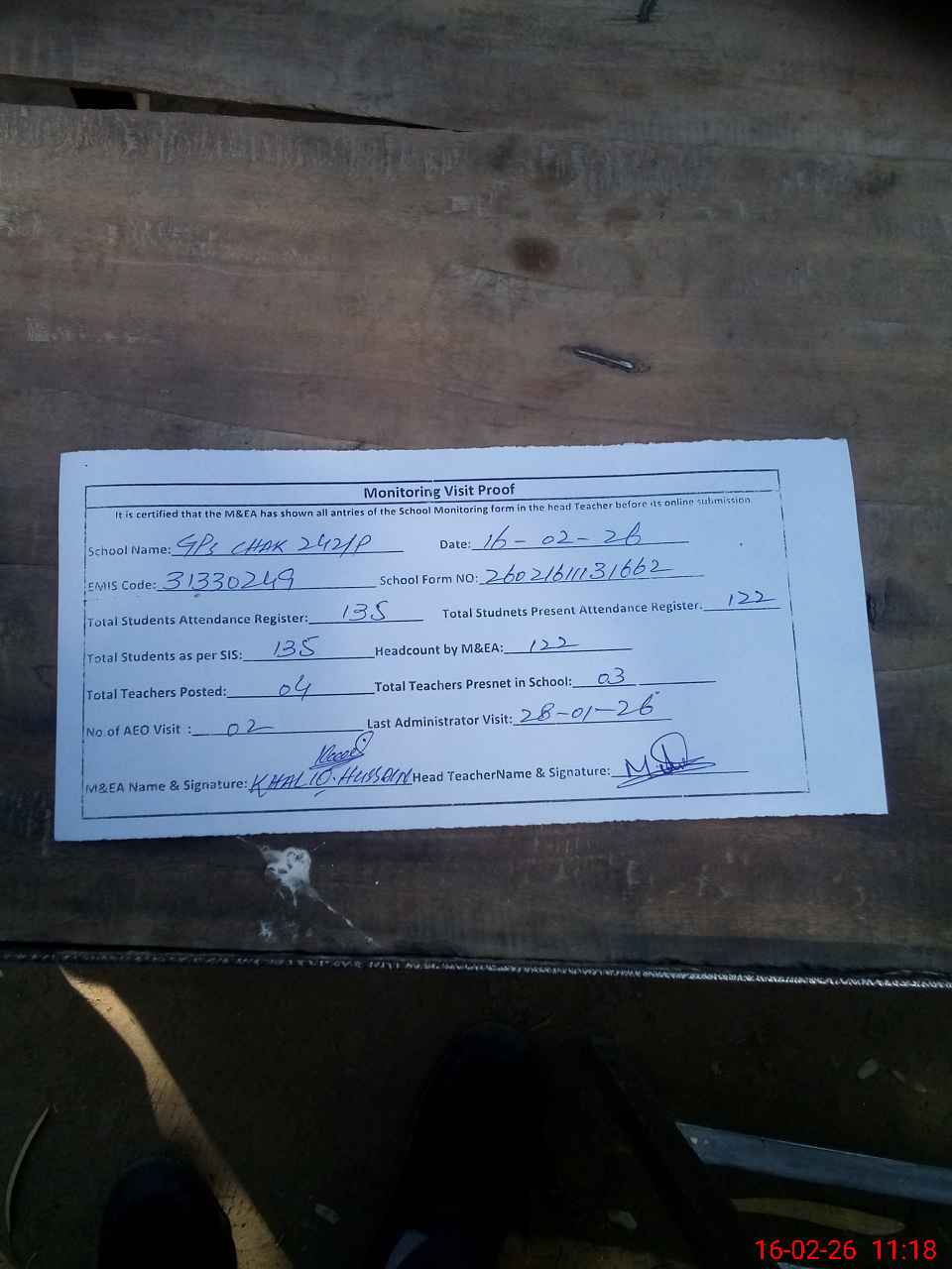| EMIS Code: 31330249 | Name of School: GPS CHAK 242/P | |||