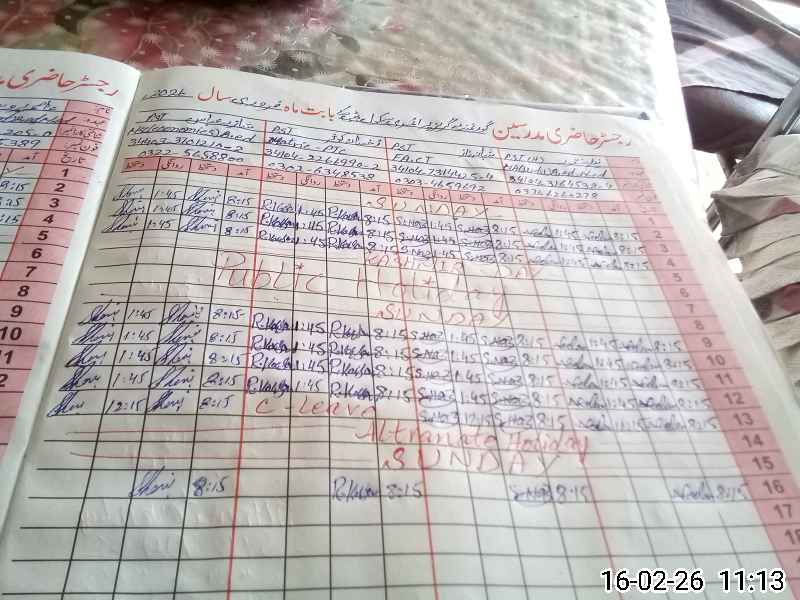 | CNIC | Full Name | Designation | R/C | Absence During Last Calender Month |
