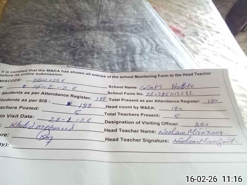 | EMIS Code: 34120336 | Name of School: GGPS BHATTI KAY | |||