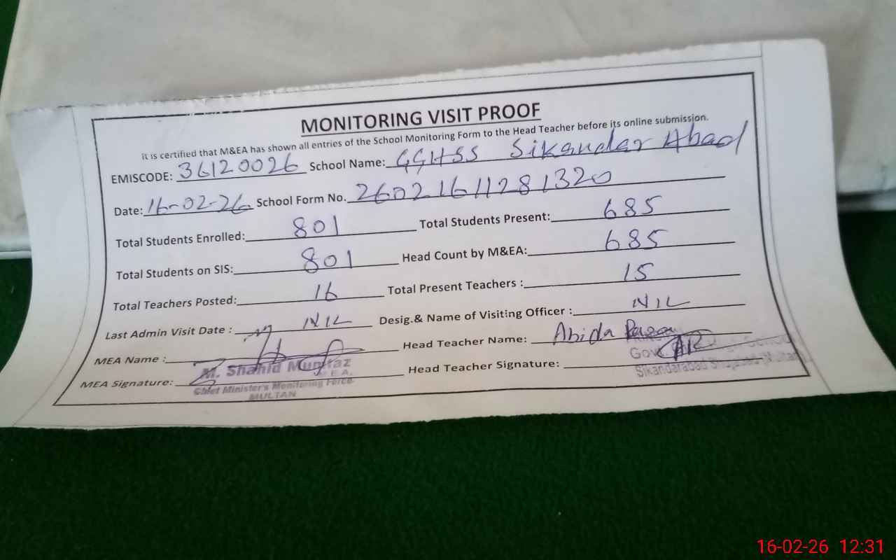 | EMIS Code: 36120026 | Name of School: GGHSS SIKANDAR ABAD SHUJABAD | |||