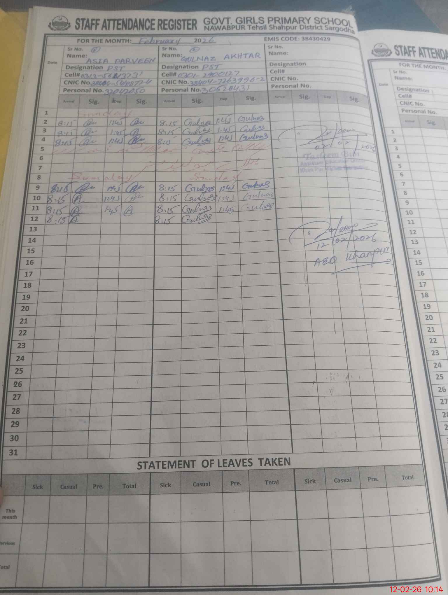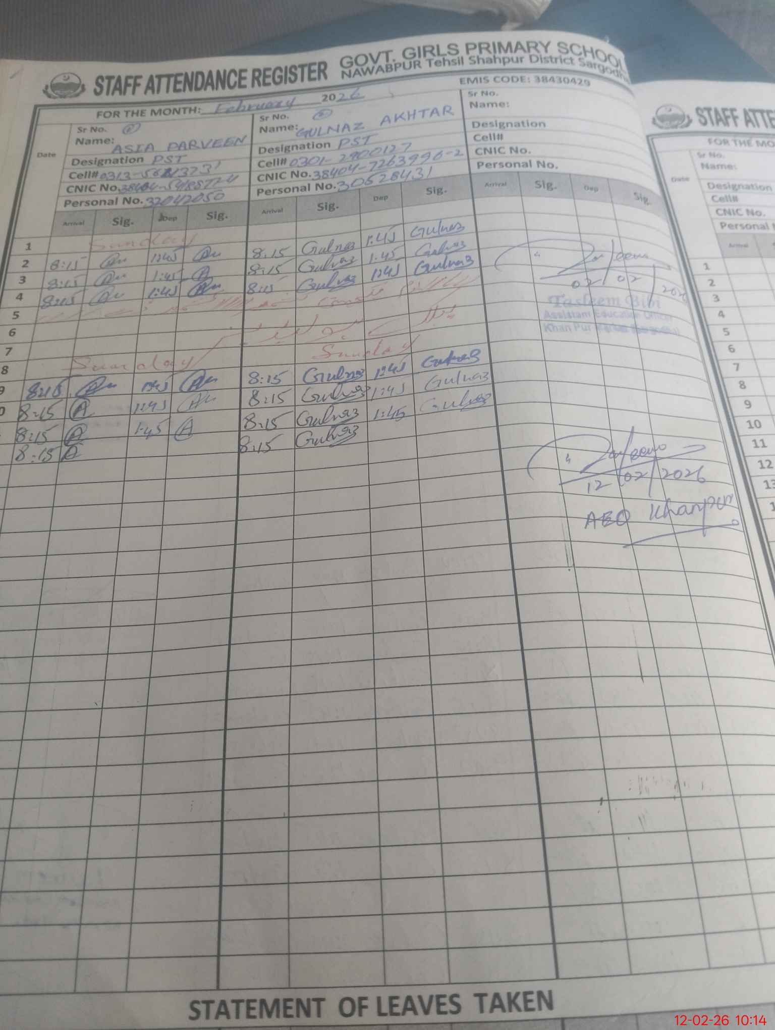 | EMIS Code: 38430429 | Name of School: GGPS NAWAB PUR | |||