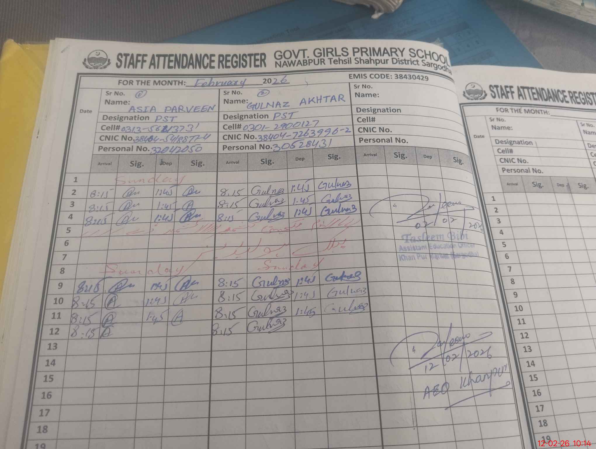 | District: SARGODHA | Tehsil: SHAHPUR | Markaz: KHANPUR - FEMALE | Level: Primary | |
