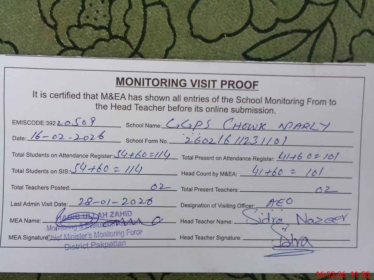 | Certified that this School was Inspected by the Undersigned MEA/DMO Today and the Information Stated Above is as Per Record. | |||||