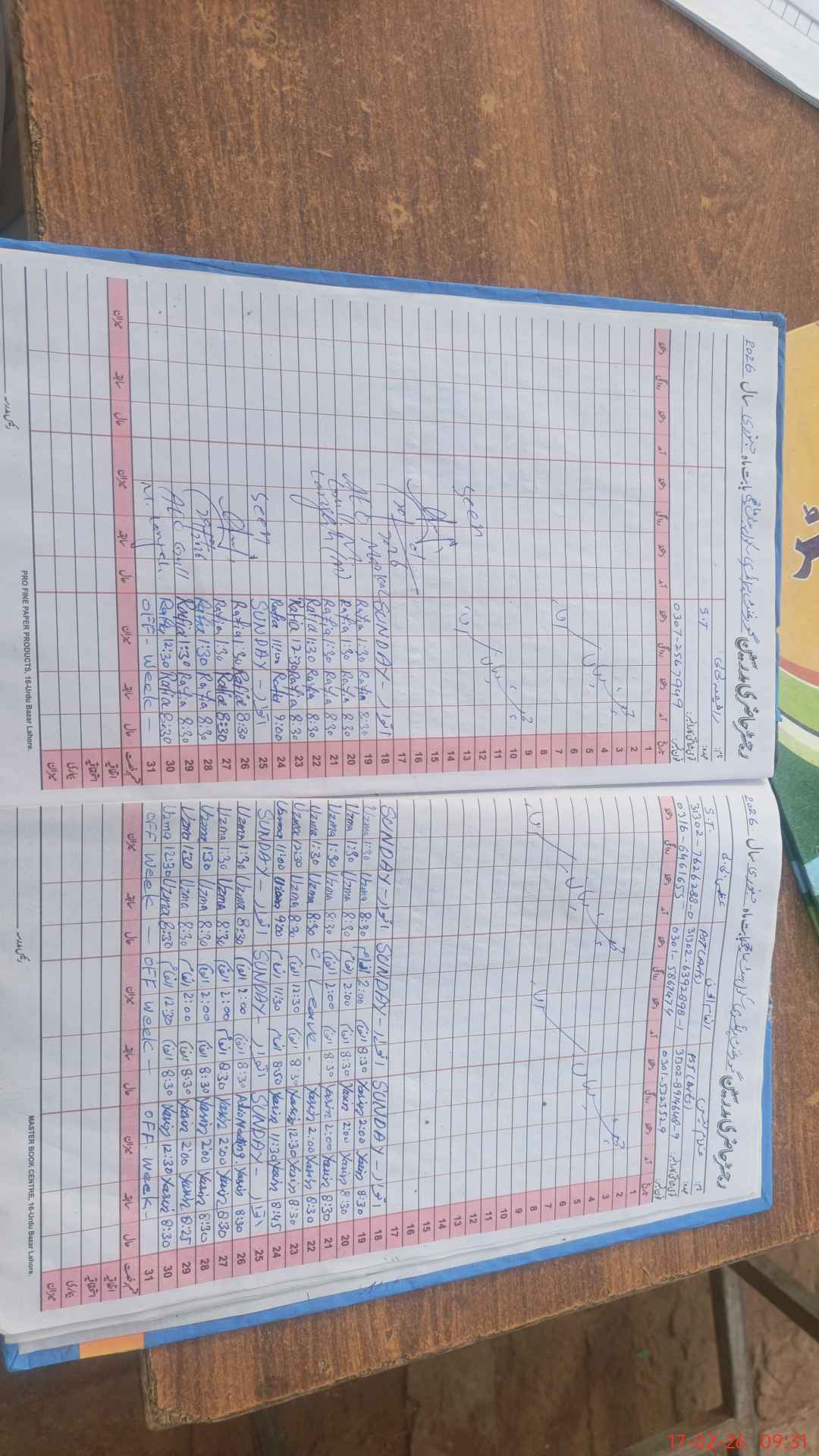 | CNIC | Full Name | Designation | R/C | Absence During Last Calender Month |
