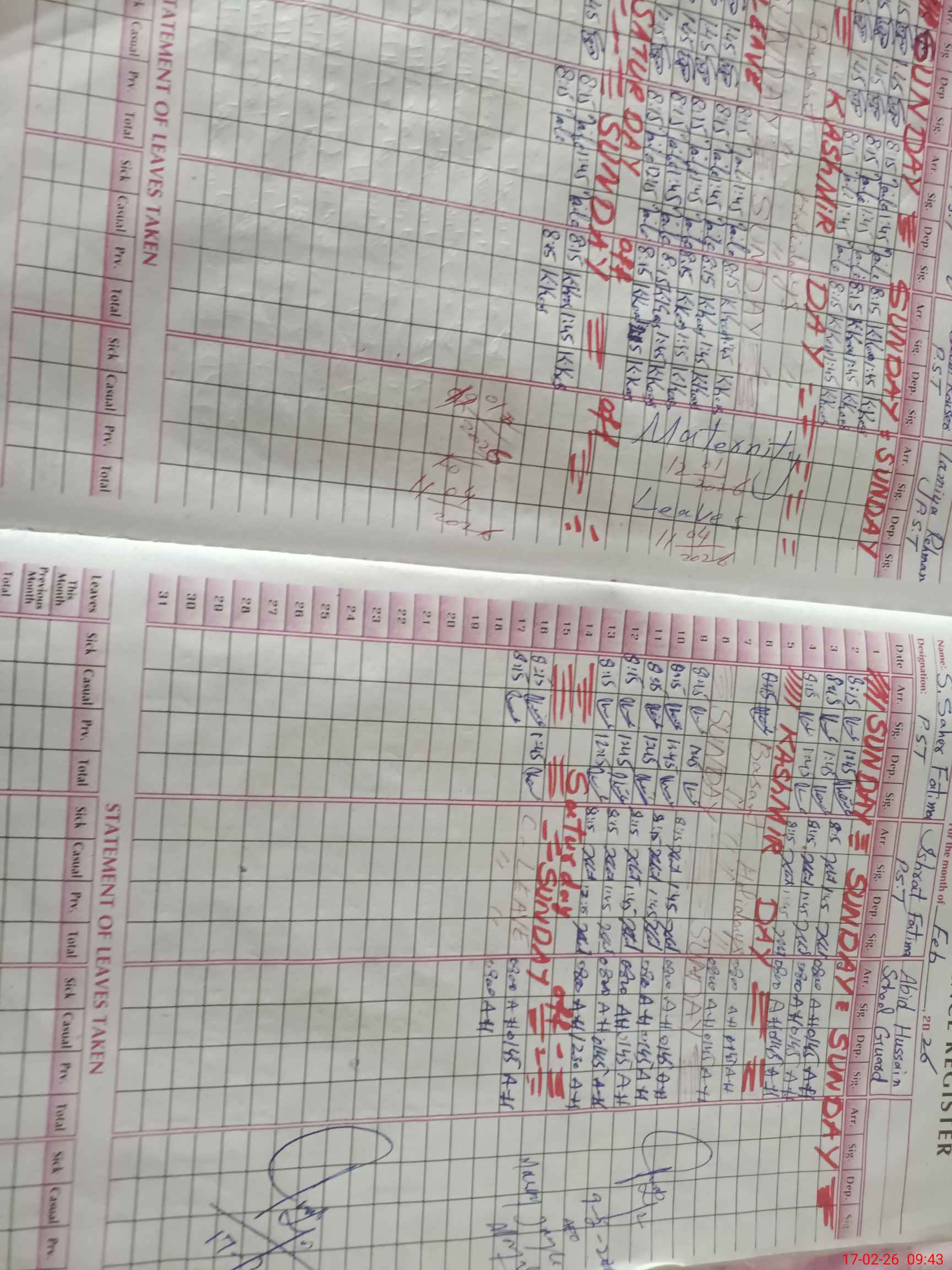 | Leave | Duty | Absent | Maternity | Medical | Ex- Pak |