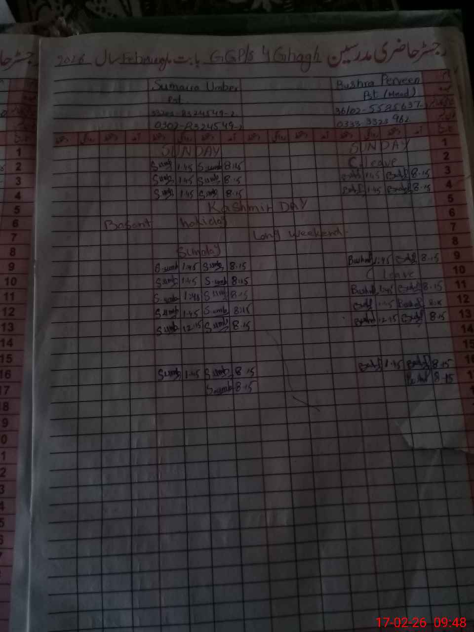 | Name: Bu**** Pe**** Designation: (School Headmaster's/Headmistress's) PST Phone/Cell Number: 03**** |
