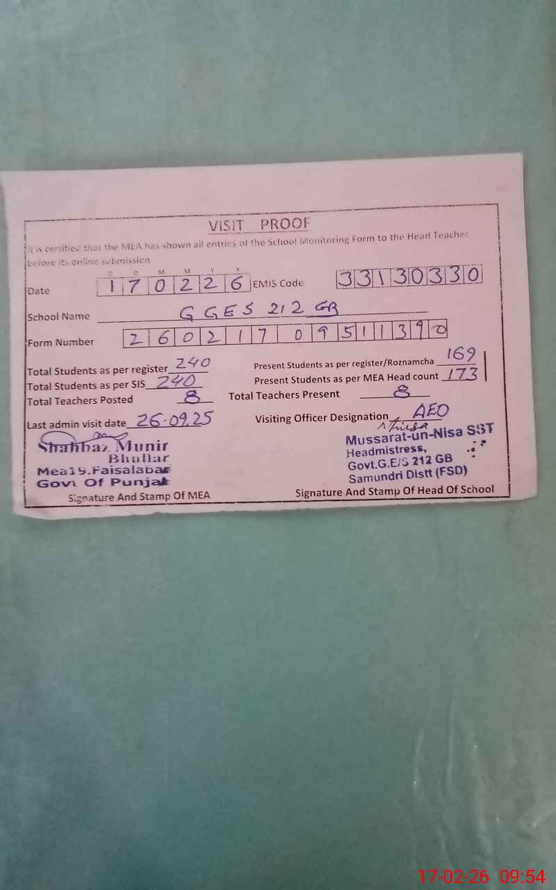 | Attendance Register | Head Teacher | MEA with School | Visit Proof |