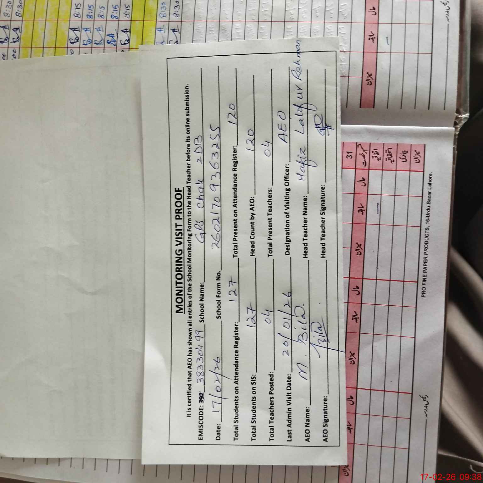 | EMIS Code: 38330499 | Name of School: GPS CHAK NO 2 DB | |||