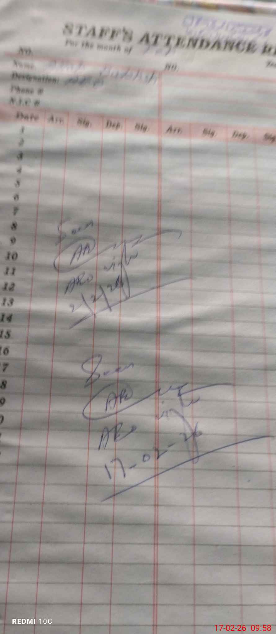 | Monitoring Date: 17-02-2026 | Start Time: 17-02-2026 09:27 AM | End Time: 17-02-2026 09:58 AM | Name of MEA: AL**** BA**** | |