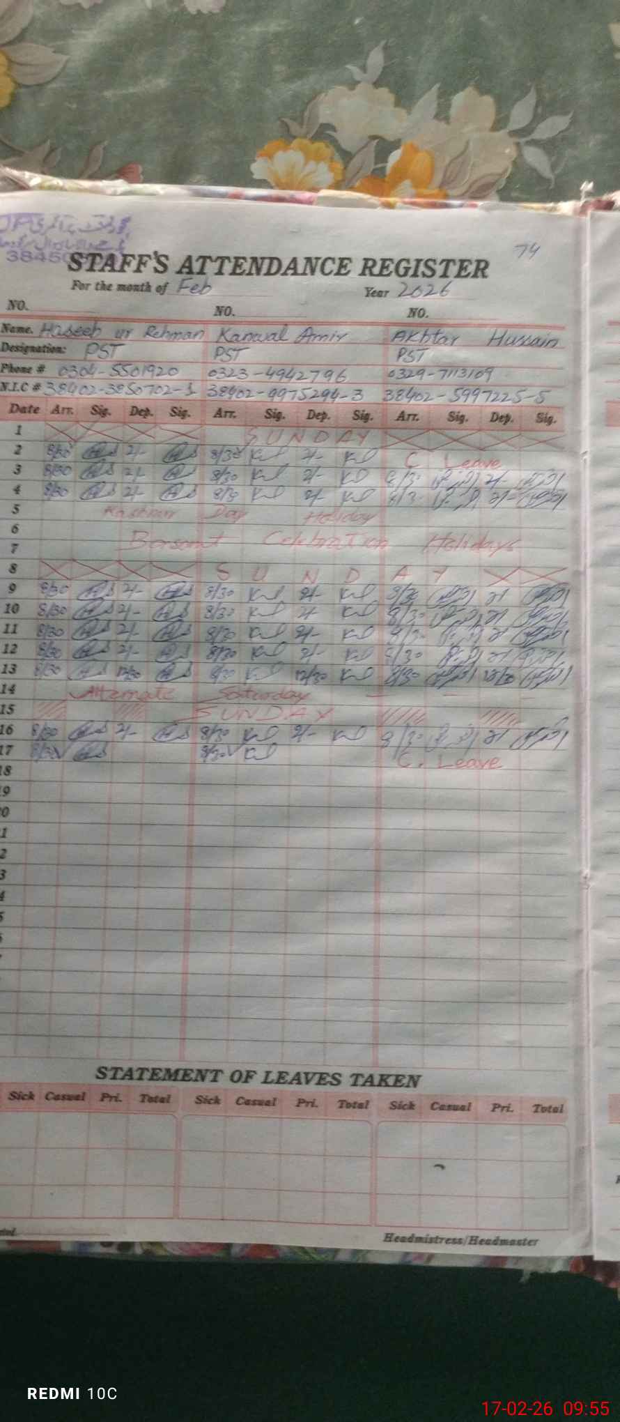 | Name: HA**** URRE**** Designation: (School Headmaster's/Headmistress's) PST Phone/Cell Number: 03**** |