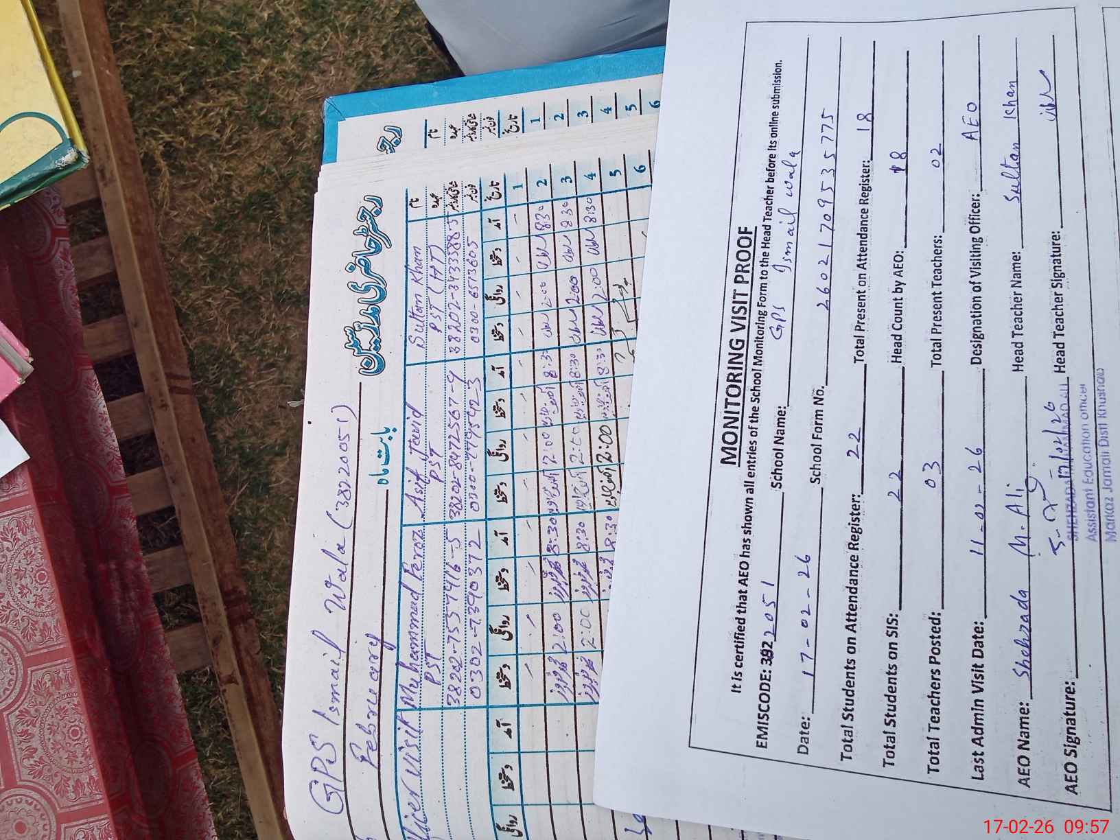 | Attendance Register | Head Teacher | MEA with School | Visit Proof |