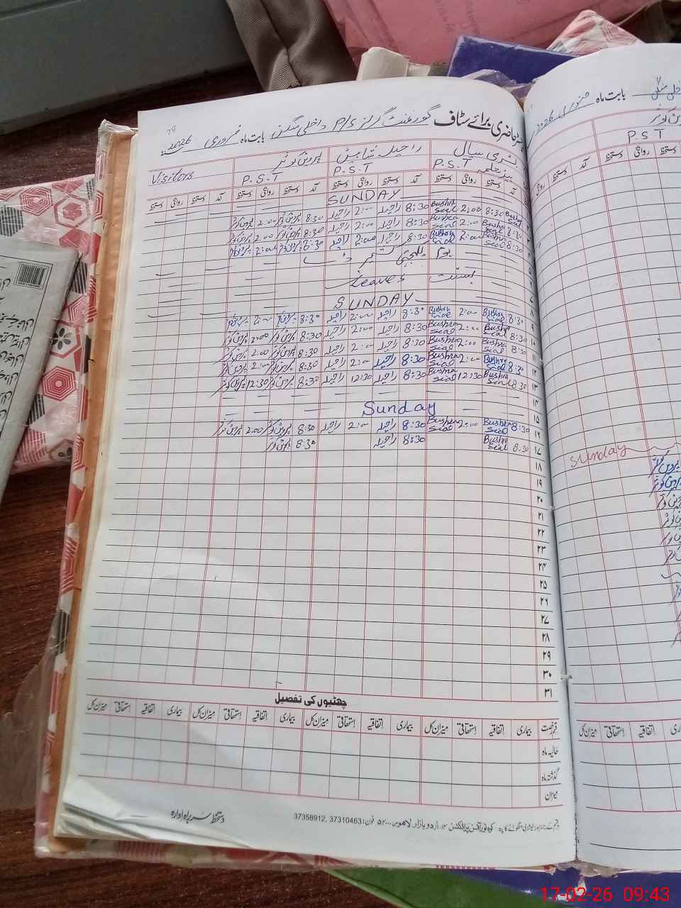 | CNIC | Full Name | Designation | R/C | Absence During Last Calender Month |