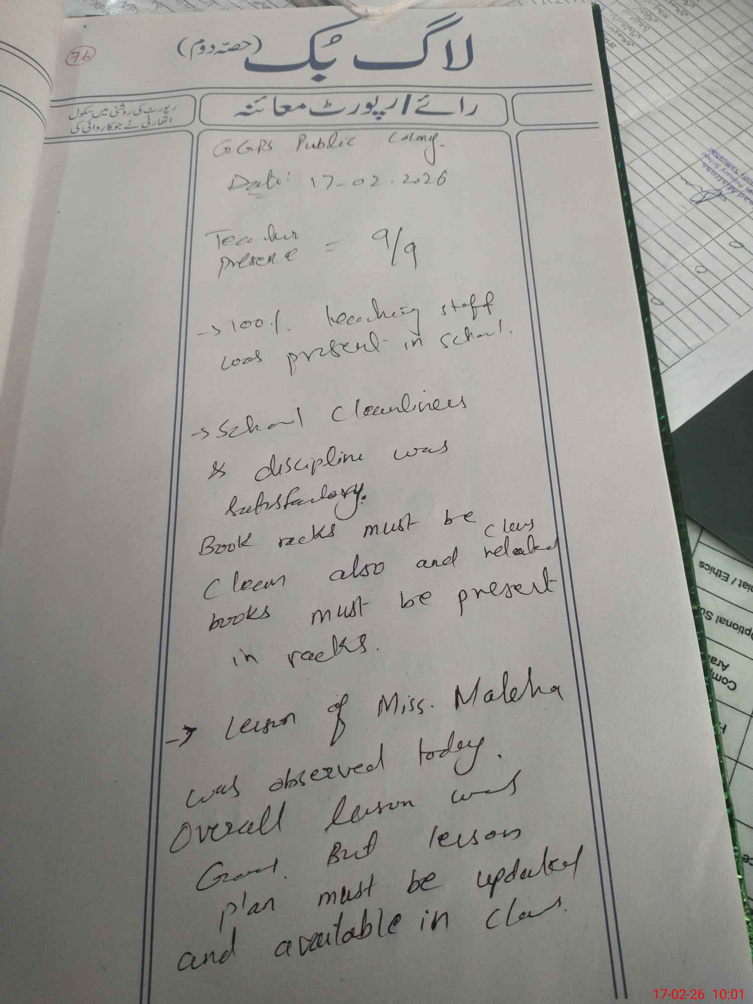 | Attendance Register | Head Teacher | MEA with School | Visit Proof |