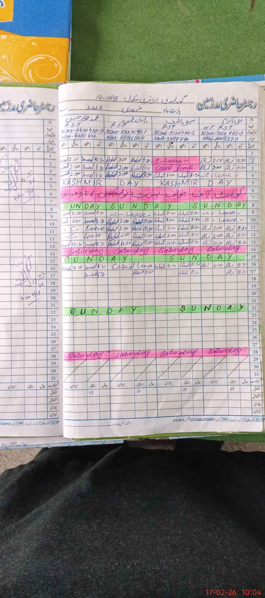 | CNIC | Full Name | Designation | R/C | Absence During Last Calender Month |