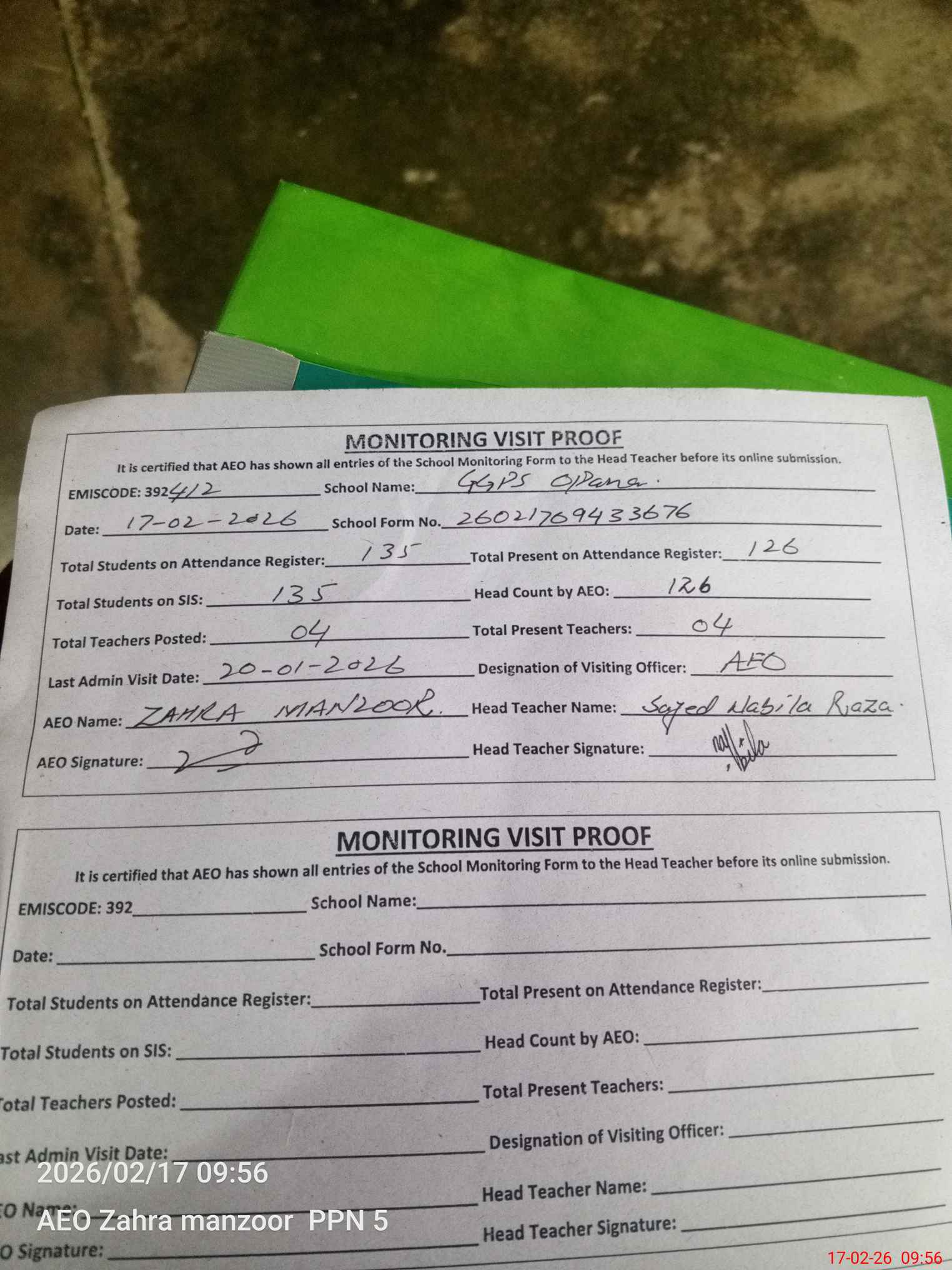 | Monitoring Date: 17-02-2026 | Start Time: 17-02-2026 09:00 AM | End Time: 17-02-2026 10:15 AM | Name of MEA: Za**** Ma**** | |