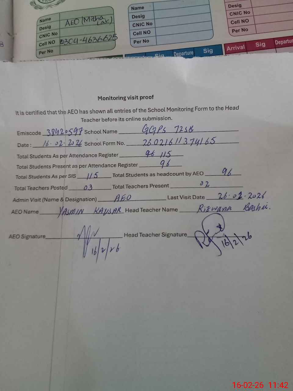 | EMIS Code: 38420597 | Name of School: GGPS CHAK NO.72 A-SB | |||