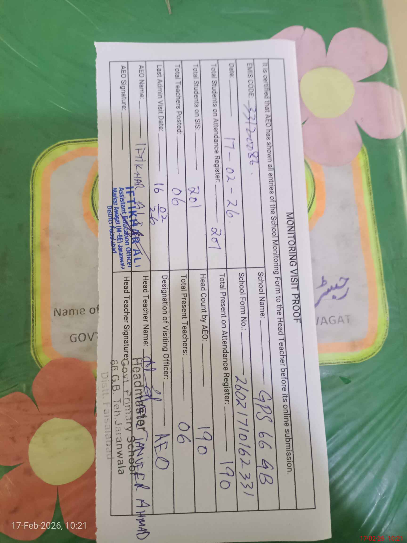 | EMIS Code: 33120086 | Name of School: GPS CHAK 66 GB | |||