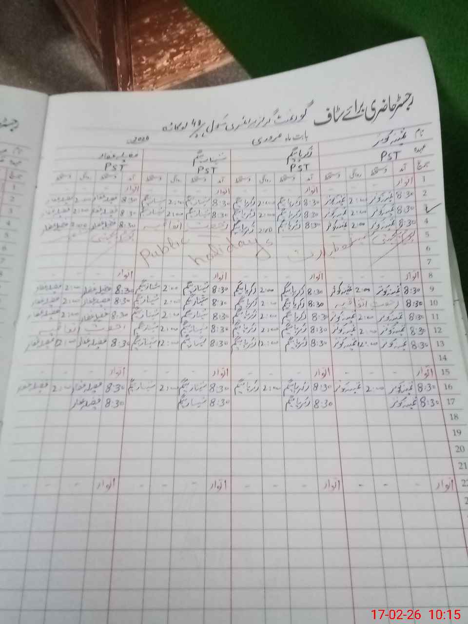 | CNIC | Full Name | Designation | R/C | Absence During Last Calender Month |