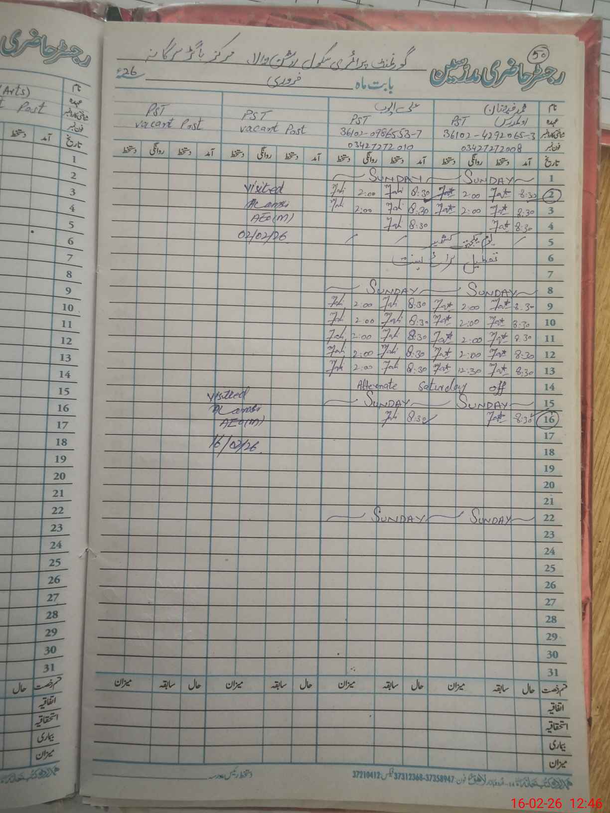| Name: M.FA**** Designation: (School Headmaster's/Headmistress's) PST Phone/Cell Number: 03**** |