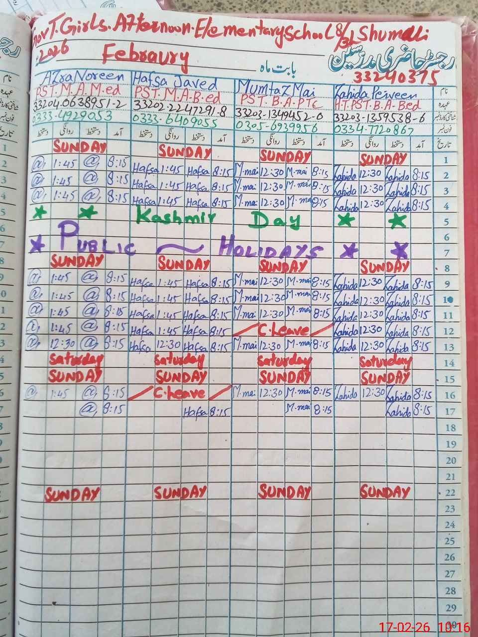 | Name: ZA**** PA**** Designation: (School Headmaster's/Headmistress's) PST Phone/Cell Number: 03**** |