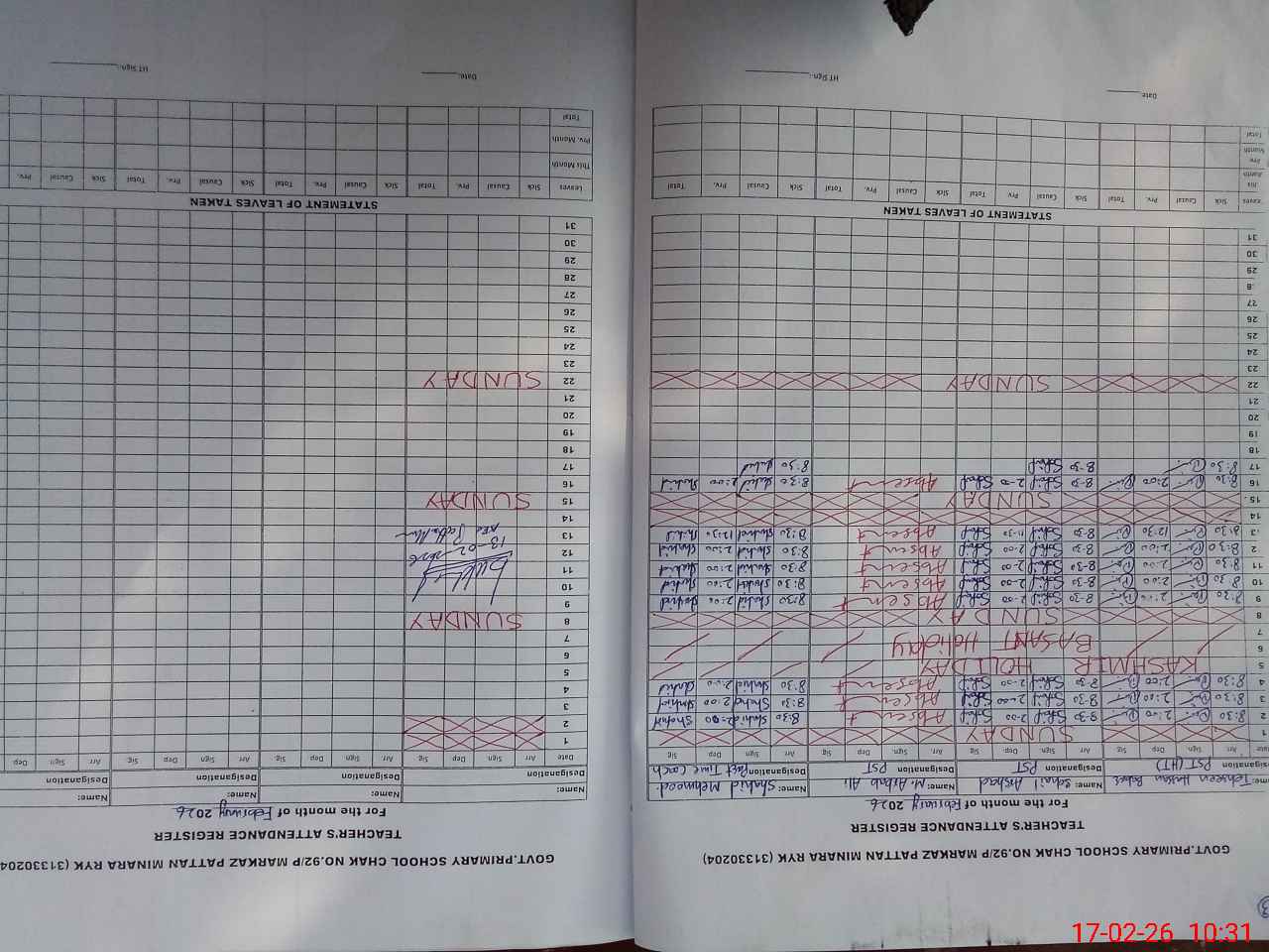 | 31**** | Mu**** Ar**** Al**** | PST Science/Maths | Regular | 0 | 0 | 31 | 0 | 0 | 0 | 0 | 0 | 0 | Absent (Un-Authorized) |