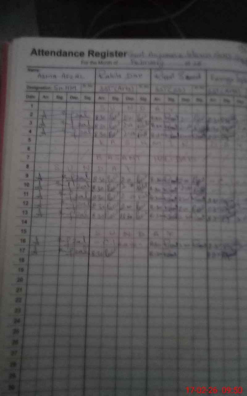 | 00**** | Ab**** Al**** | CHAUKIDAR | Regular | 0 | 0 | 0 | 0 | 0 | 0 | 0 | 0 | 0 | Earned |