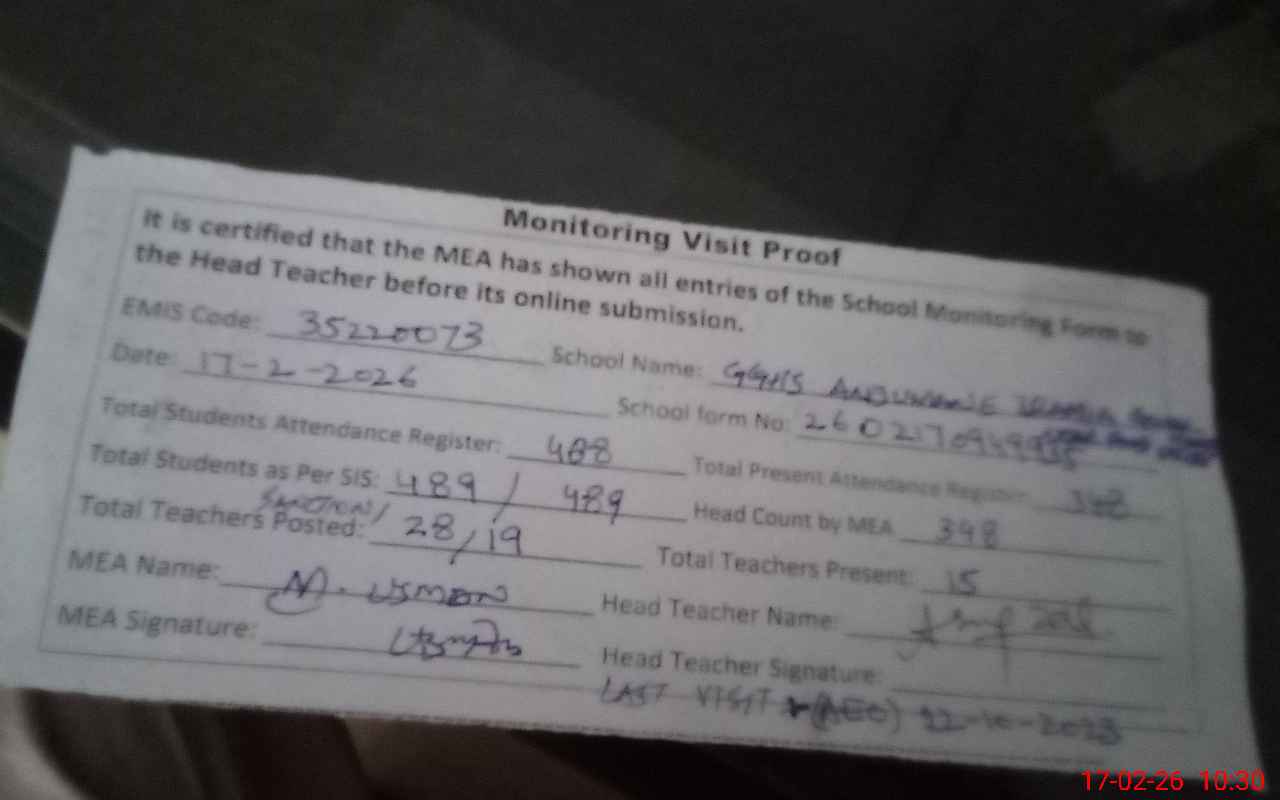 | EMIS Code: 35220073 | Name of School: GGHS ANJUMAN-E-ISLAMIA GOWALMANDI NEAR FOOD STREET | |||