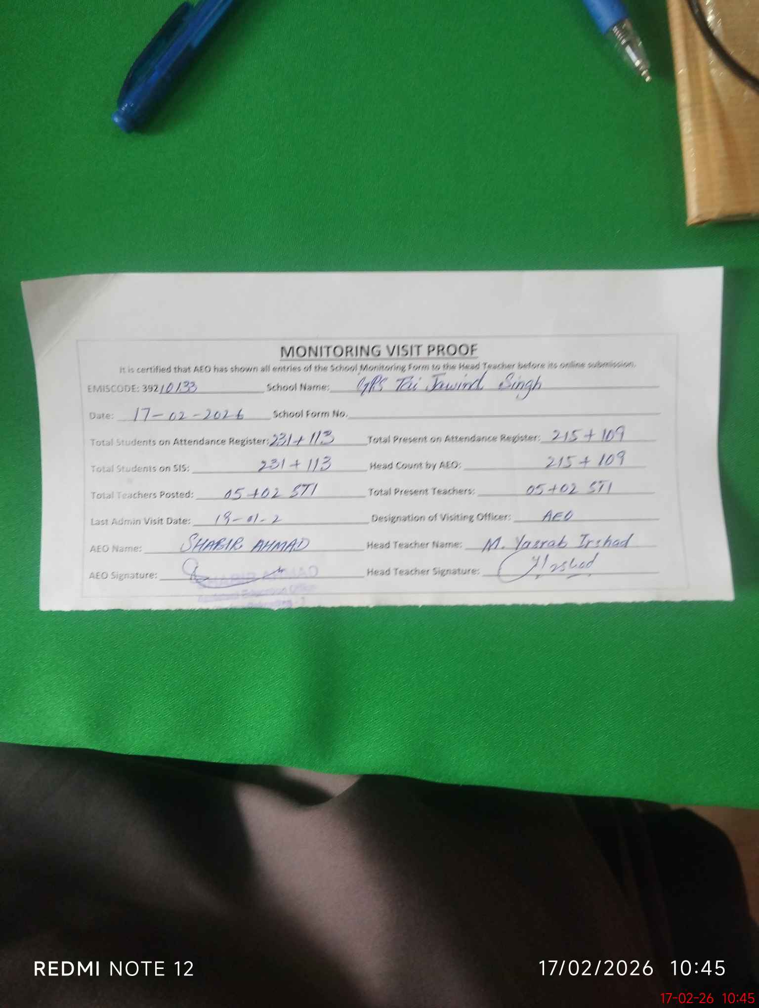 | EMIS Code: 39210133 | Name of School: GPS TAI JAWIND SINGH | |||