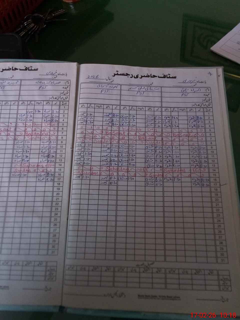 | CNIC | Full Name | Designation | R/C | Absence During Last Calender Month |