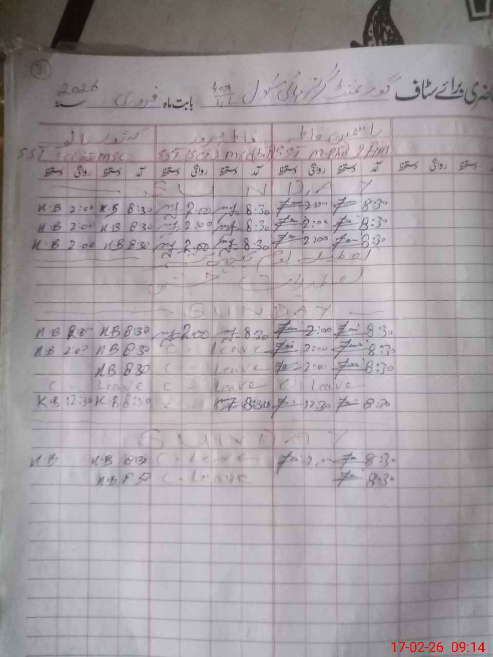| 35**** | Fa**** Sa**** | SST Science | Regular | 2 | 0 | 0 | 0 | 0 | 0 | 0 | 0 | 2 | Casual |
