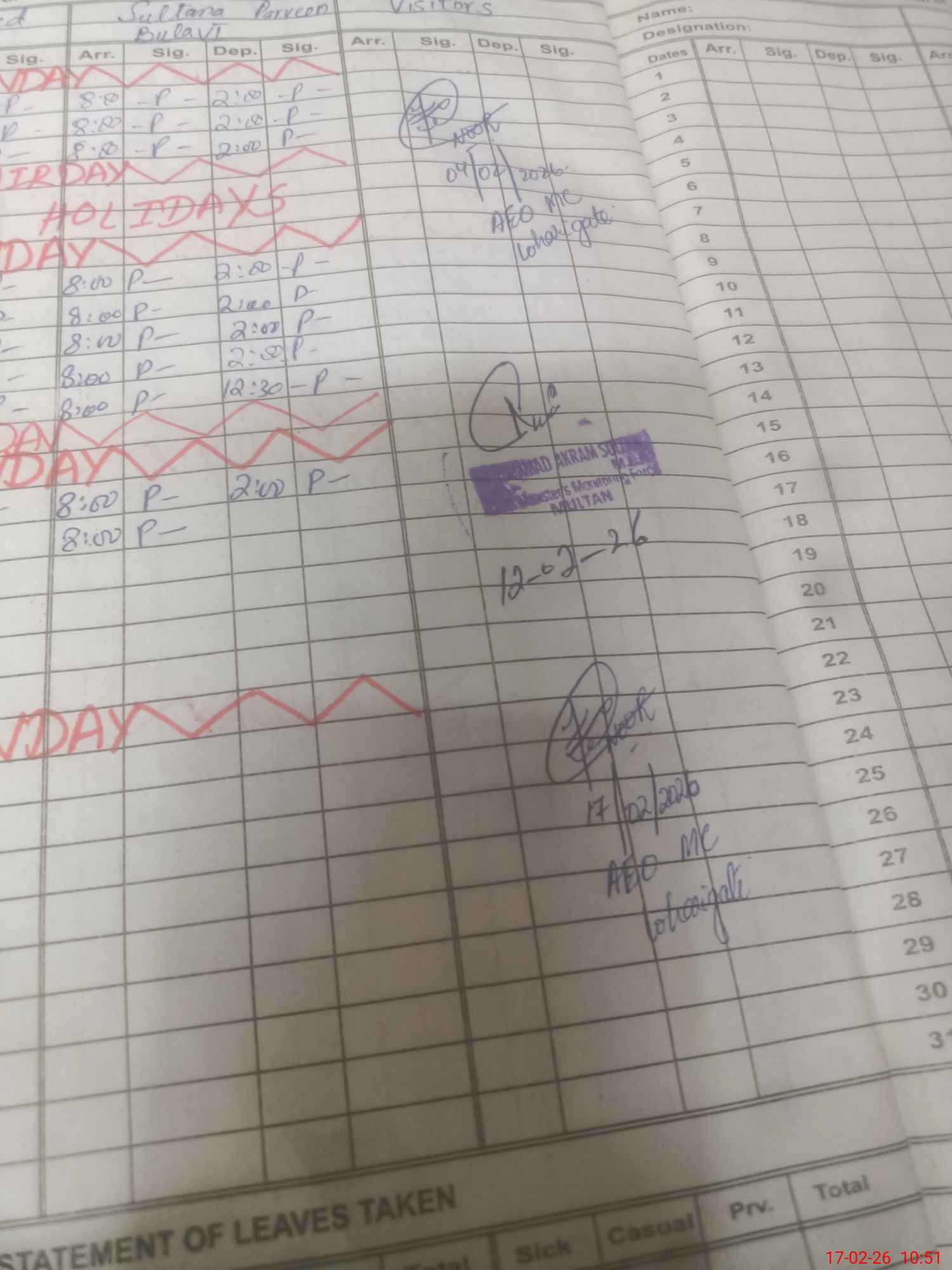 | Sr.No. | Visit Date | Designation | ||