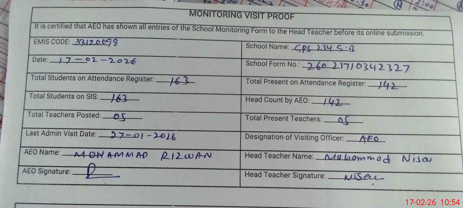| EMIS Code: 33120098 | Name of School: GPS 234 GB JRN FSD | |||