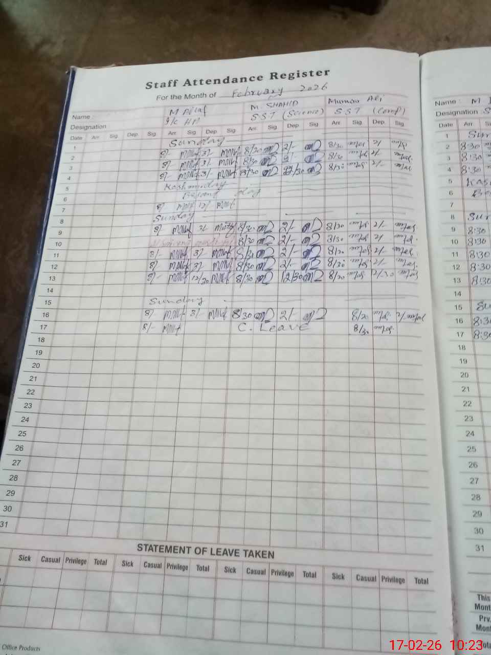 | 36**** | Mu**** Sh**** | SST Science | Regular | 0 | 0 | 0 | 0 | 0 | 0 | 0 | 0 | 0 | Casual |