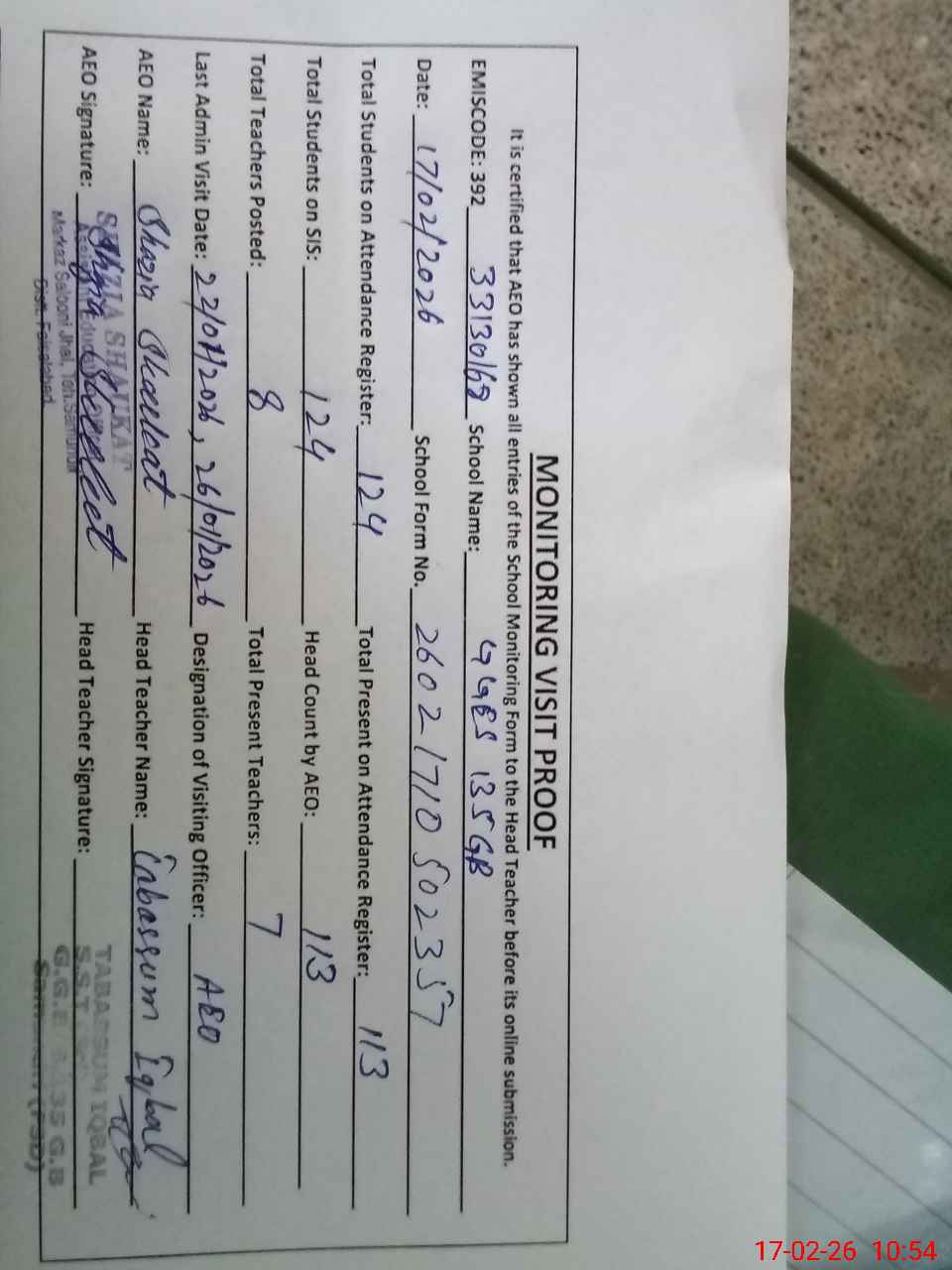 | EMIS Code: 33130168 | Name of School: GGES CHAK 135 GB SAMUNDRI | |||